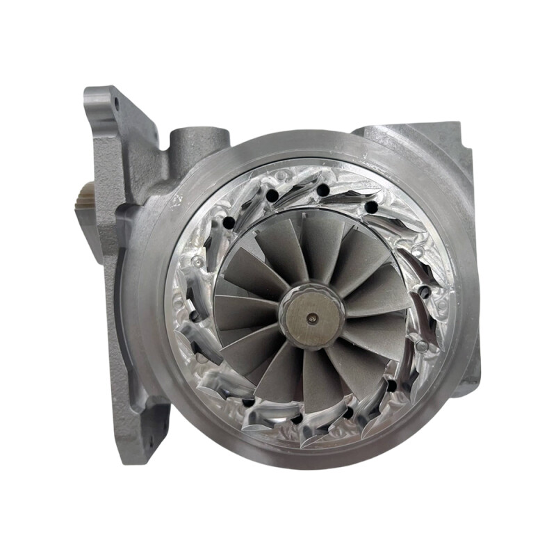 Картридж складається з центрального корпусу турбіни, внутрішнього набору, ротора турбіни та компресорного колеса турбіни (крильчатки). Цей картридж успішно пройшов тестування на балансувальному стенді Turbo Technics і повністю готовий до встановлення та подальшої експлуатації.